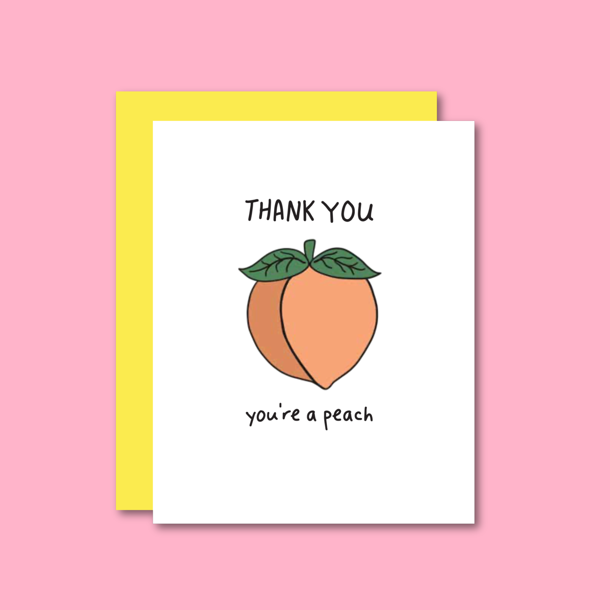 Thank you—you’re a peach! This juicy little risograph card is the sweetest way to show your gratitude. With a bright, blushing peach front and center, it’s perfect for thanking a friend, teacher, neighbor, or anyone who’s been extra kind. Good vibes, good manners, good fruit. What's a Risograph? It's a printing method like screen printing but done on a vintage-style office copier! It stands out for its vibrant, fluorescent colors & one-of-a-kind textures.